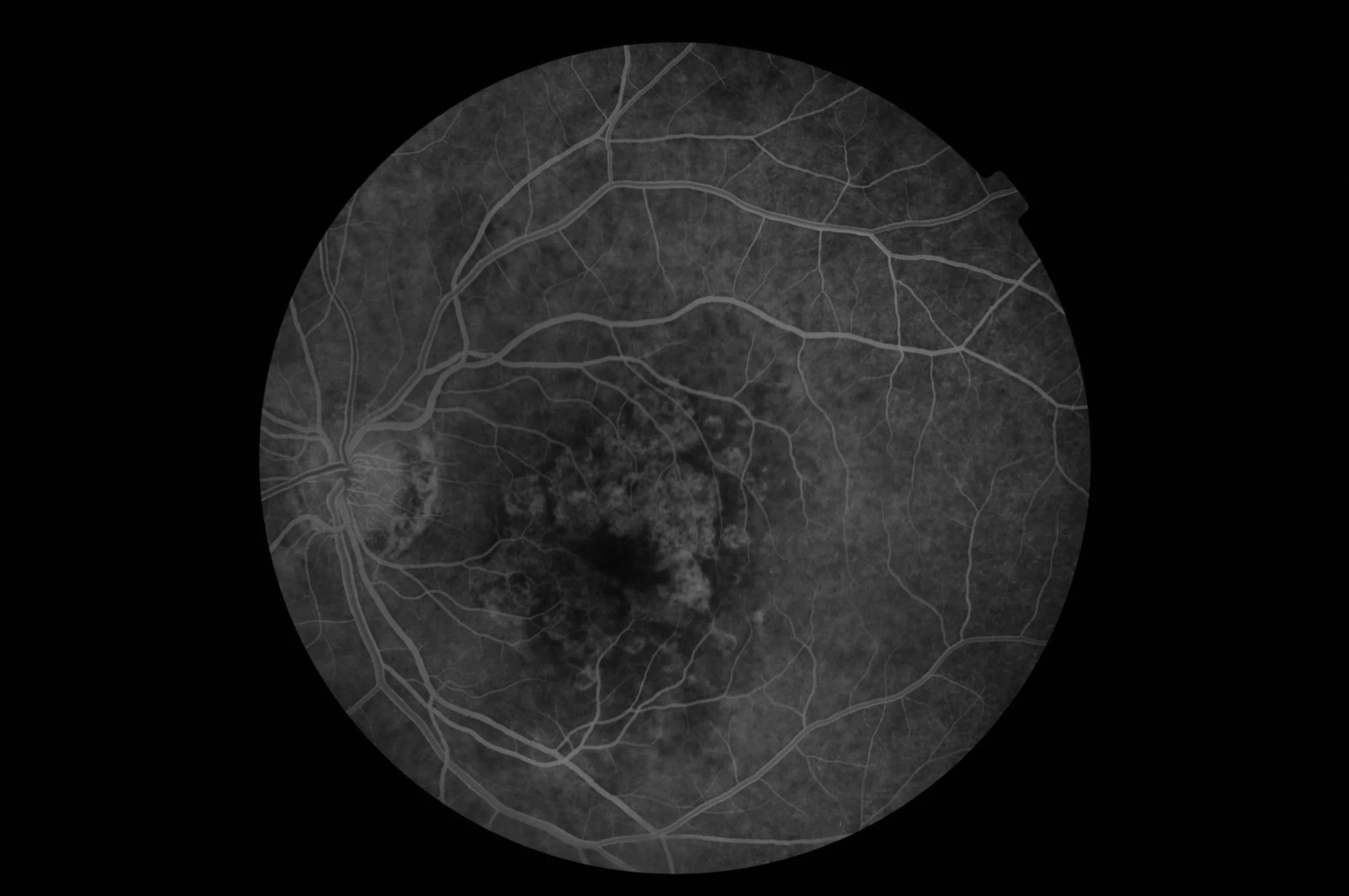 * angiographie en infrarouge au vert d'indocyanine : l'injection de vert d'indocyanine permet dans des cas de diagnostic difficile de mieux visualiser des vaisseaux choroïdiens pathologiques, notamment les néovaisseaux choroïdiens au cours de la dégénérescence maculaire liée à l'âge.